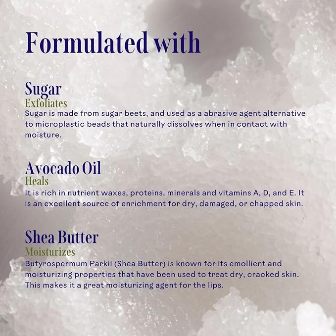 - VANILLA LIP EXFOLIATOR: Treat your dry lips to a triple action lip scrub that leaves them plumped, hydrated and soothed. This reviving lip treatment exfoliates with sugar crystals to help repair, restore and renew, and has a natural vanilla flavor.