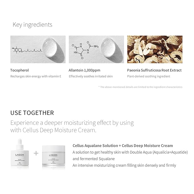 LAGOM Cellus Aqualane Solution | Korean Serum for Face, Vegetable Squalane Essence, Skincare for Glass Skin, Deep Moisturization, Skin Barrier Strengthening 1.69 Fl Oz