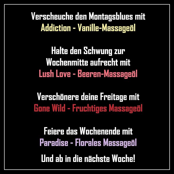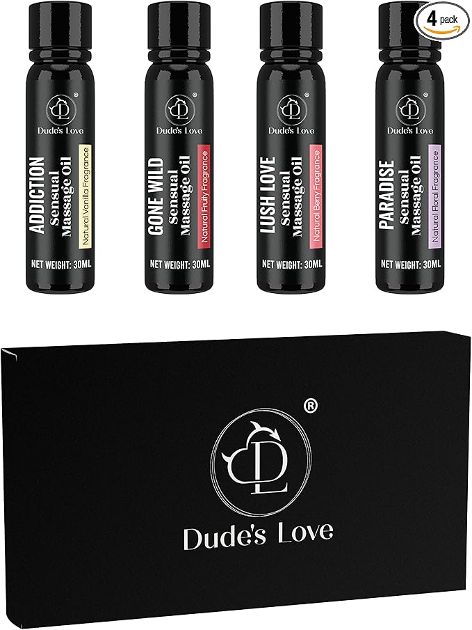 - Can’t Decide? Now you don’t have to! Get 4 of our best selling Massage Oil scents Vanilla, Floral, Fruity, Berry & turn an ordinary massage into an unforgettable one! Dude’s Love massage oil is perfect for any moments.