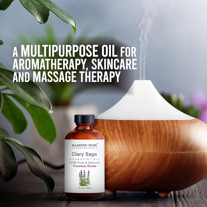 MAJESTIC PURE Clary Sage Essential Oil, Premium Grade, Pure and Natural, for Aromatherapy, Massage, Topical & Household Uses, 1 fl oz