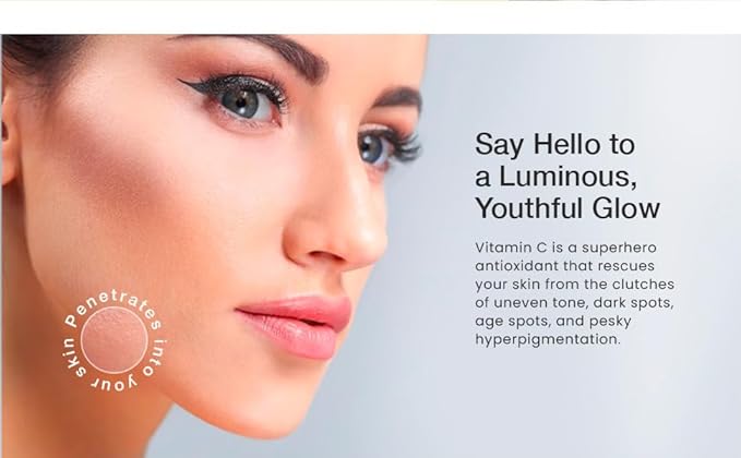 - INFUSED WITH VITAMIN C: A powerful antioxidant that helps brighten and even out skin tone, reducing the appearance of dark spots, age spots, and hyperpigmentation.