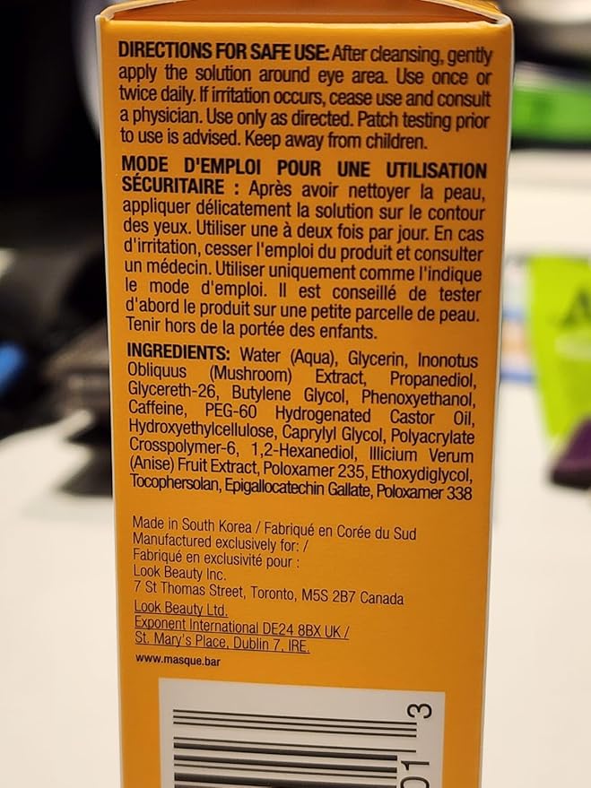Masque Bar My Ingredients Caffeine Under-Eye Solution for Dark Circles, Puffiness and Wrinkles - Treatment for Bags Under Eyes and Fine Lines, for Men and Women