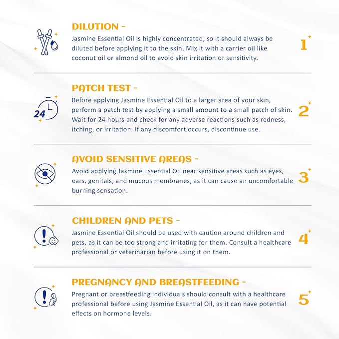 - Quality & Safety: All HIQILI oils have undergone multiple rounds of GC/MS testing by multiple third-party laboratories, the result is 100% pure natural. Diluted jasmine essential first before applying it on skin