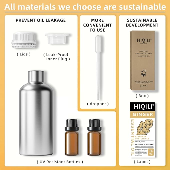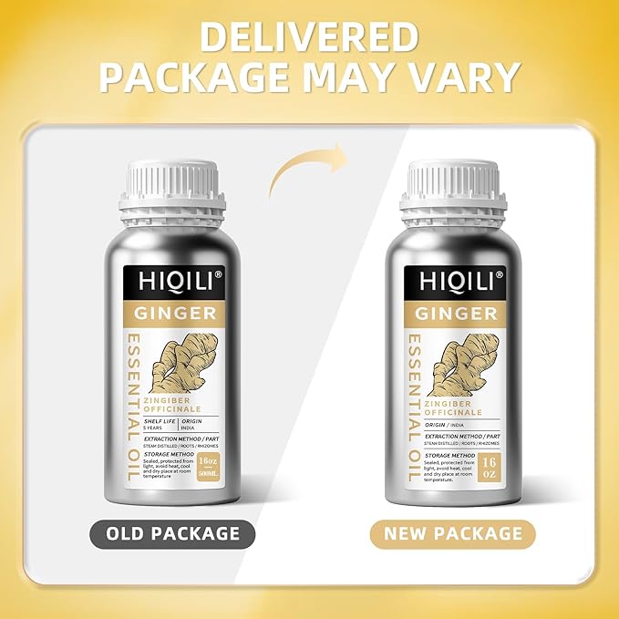 HIQILI 16 Fl Oz Ginger Oil, 100% Pure Natural Ginger Essential Oil for Hair, Massage, Skin - 500ML