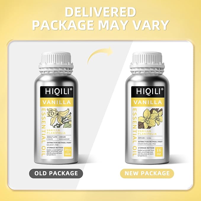 HIQILI 16 Ounces Vanilla Essential Oil, Strong Fragrance for Body Lotion, Candle Making, Soap, Aromatherapy -16 Fl Oz