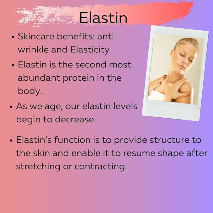- ELASTIN is a fundamental component of skin tissue, and it delivers superior hydrating properties.