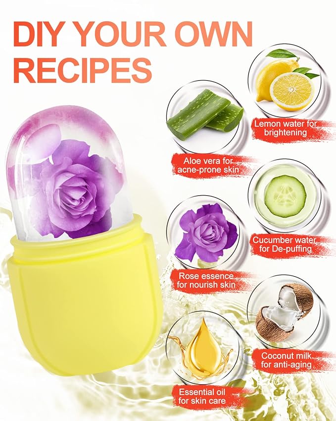 - ✔️Easy to use - Open the face ice mold,add essential oils, roses or your favorite customized formula, close the lid, and pour water from the top hole into the ice cube mold; Put it in the freezer and wait for 4-5 hours⏰. (The water should not be overfilled,it will expand during the freezing process.)