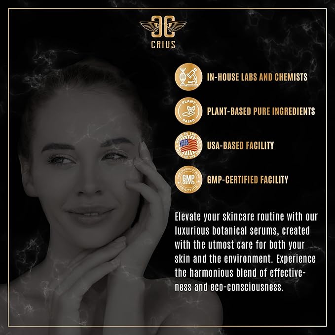 - Proudly Made in USA: Crius Cosmetics formulates face serums in a GMP-certified facility with deep clinical research. Our products feature advanced ingredients and multi-action formulas to deliver what's promised.
