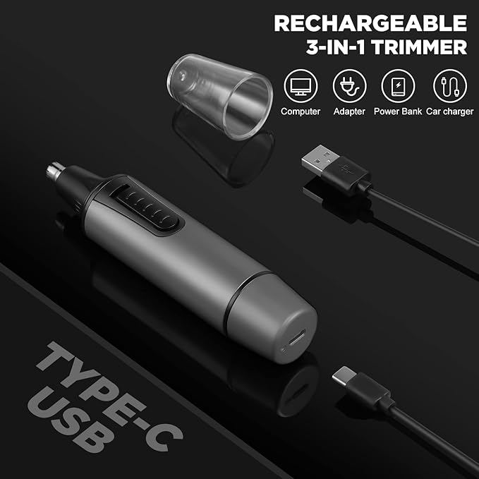 - 【USB RECHARGEABLE】Instead of AA batteries. This nose hair trimmer for men comes with rechargeable USB cable and built-in battery to make sure sufficient power at anytime anywhere, no need to buy more batteries.