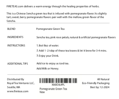FIRE TEAS Pomegranate Green Tea