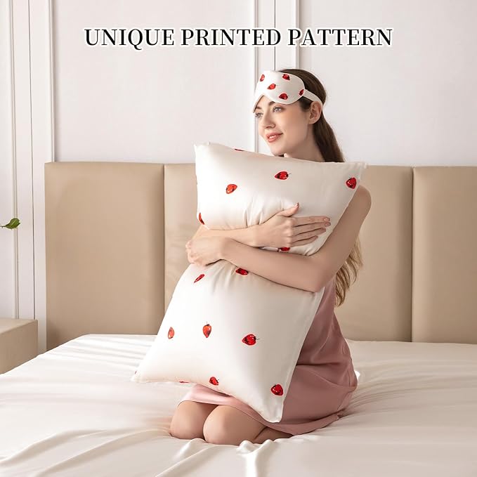 THXSILK Sleep Mask 100% 19 Momme Pure Mulberry Silk Super Smooth Cooling Decorative Sleep Eye Mask Blackout Eye Cover with Wide Head Strap, Strawberry-White