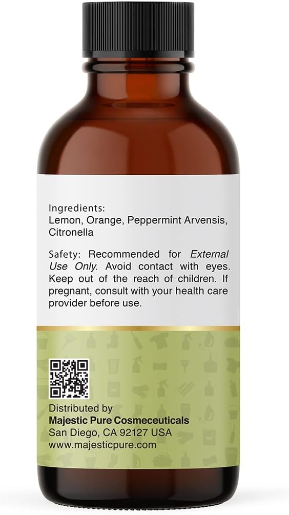 Majestic Pure Cleaning Essential Oil Blend | 100% Pure & Natural Premium Grade Oil for DIY Products, Cleaning | Blend of Lemon, Orange, Peppermint, Citronella | for Aromatherapy & Diffuser | 1oz