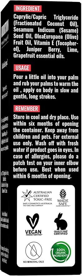 Organic - Berry Full Body Massage Oil - Revitalising, Detoxifying | No Stain & Non-Sticky | with Fractionated Coconut Oil, Lime & Juniper Berry Oil - 4.05 Fl Oz