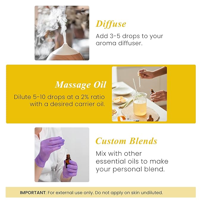 - HIGH QUALITY GLASS BOTTLE – Our Essential Oil comes in an amber glass bottle to keep out UV rays and protect the oil against sunlight. It has a built-in dropper to control the flow and get the exact amount of oil without any waste.