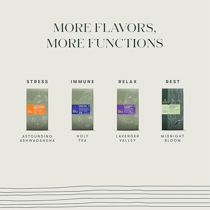 - TRY OUR OTHER FLAVORS: There's a tea for any time in the day. Try our English Breakfast, Masala Chai, Ashwagandha Tea, Earl Grey, Turmeric Tea, Organic teas and a variety of our herbal teas.