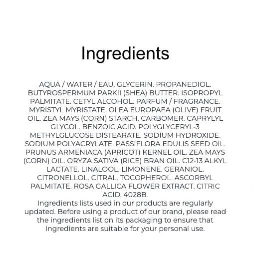 - BODY CREAM FOR WOMEN: All body skin care products are manufactured in France