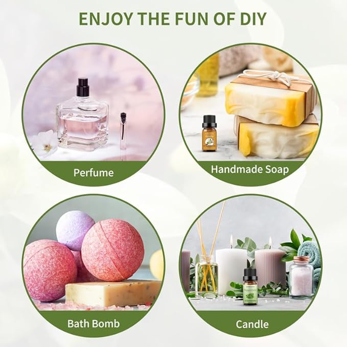 - Widely Used: Suitable for diffuser, cleaning, massage, perfume, home, bedroom, living room, bathroom, office, aromatherapy, outdoor, soap or candle making, yoga studio, car and spa, etc.
