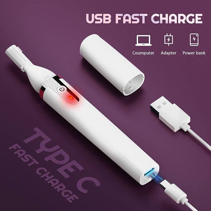 - 【USB fast charging & Washable blade】 The rechargeable eyebrow trimmer has a built-in high-capacity lithium battery, which is easy to use. No hassle of changing batteries frequently. You can easily remove and install the trimmer blade. Remove the blade and rinse directly with water, or use the included small brush to remove any remaining hair