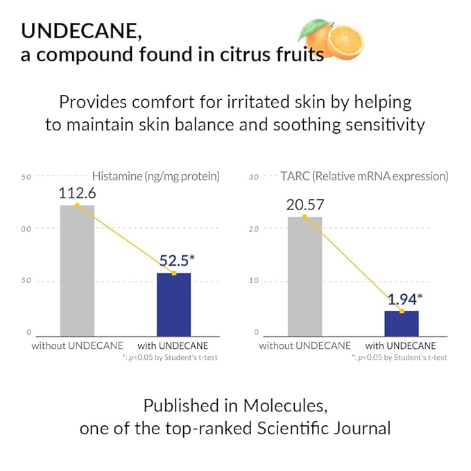 - [KEY INGREDIENT, UNDECANE] Undecane, the key ingredient in BOTANICSENS All-in-One Lotion, is a compound found in citrus fruits. Professor Taesun Park (CEO of BOTANICSENS) discovered that it helps regulate histamine and cytokine release from skin cells; Published in Molecules, a well-respected scientific journal.