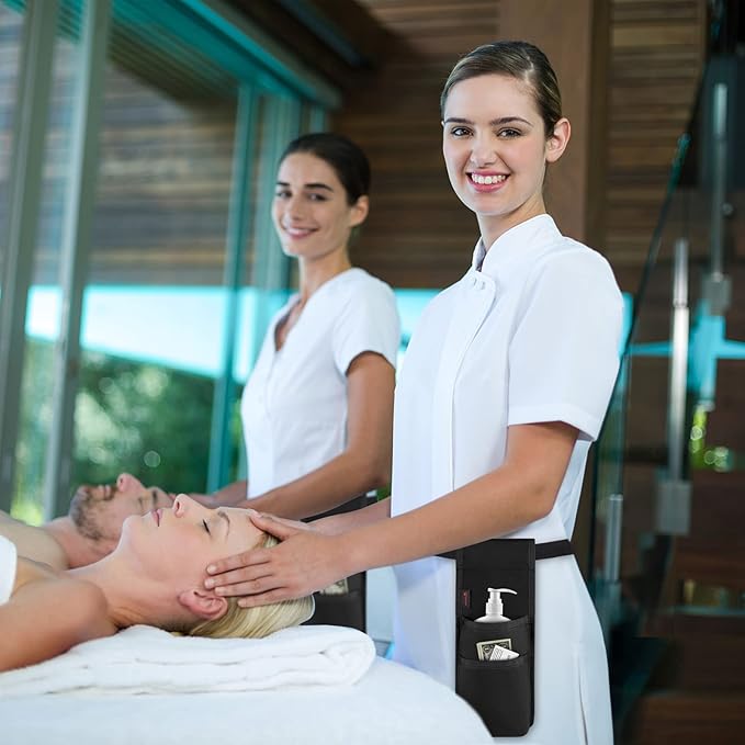 - 【Large Capacity】This massage therapist holster comes with multiple pockets, which can store a wide variety of items. Back large pocket can store phones, gloves, pens and other related tools. One mini pouch outside, can store business card, tip or changes.