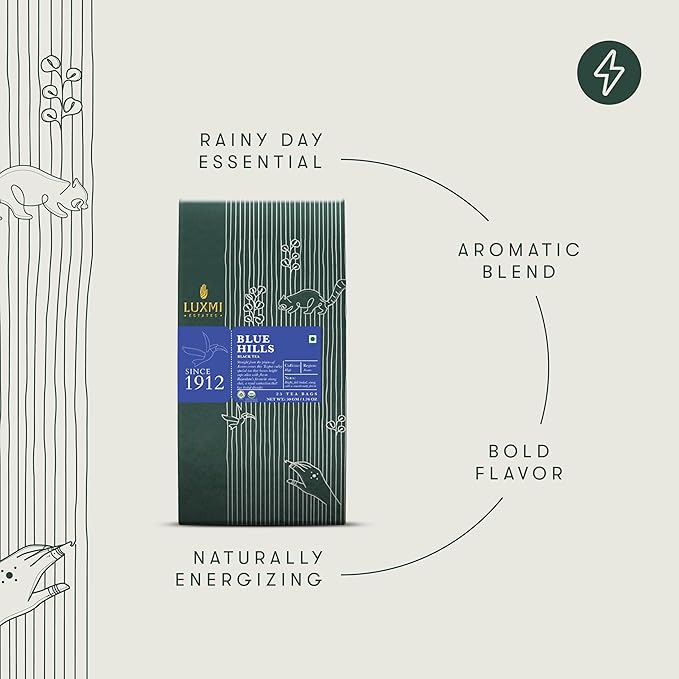 Luxmi Estates - Blue Hills - Organic CTC Assam Black Tea - 25 Tea Bags | Jodhpur Blend - Rajasthan's Favorite Chai | Strong Cup of Original Indian Chai Tea - No Spices