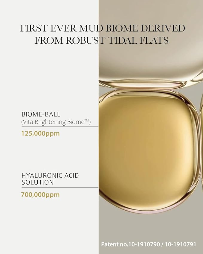 - Vitamin Tree & Tidal Mud Biomes - Featuring the world’s first mud biomes sourced from tidal mud and vitamin tree fruits (Vita-Brightening Biome), this ampoule helps brighten skin while promoting a more even complexion. The Vita-Brightening Ampoule also provides antioxidant effects, leaving your skin with a rejuvenating glow.