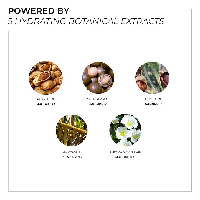 - NOURISH + BALANCE - Our 5 botanical oils such as Squalane, Peanut Oil, Jojoba Seed Oil, Macadamia Oil and Meadowfoam Seed Oil help nourish and balance dehydrated skin to retain its moisture.