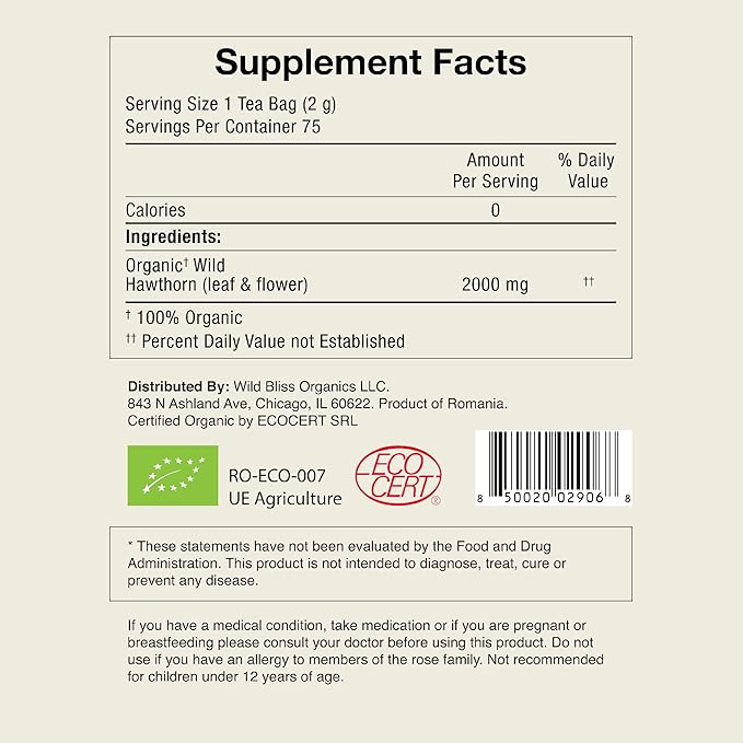 - PURE ORGANIC HAWTHORN LEAF AND FLOWER; Avoid harmful agricultural chemicals in your tea; Wild Bliss tea is free from highly processed 'natural' flavors, additives, or preservatives