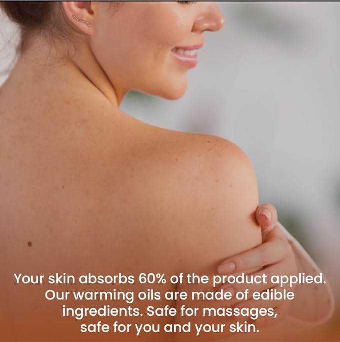 - WARMING AND RELAXING: The warming properties of this massage oil create a soothing and comforting sensation on the skin. It helps to relax tired muscles, release tension, and promote a sense of calm and well-being during the massage experience.