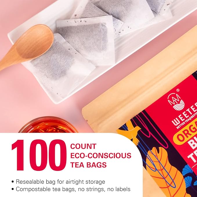 WT WEETEE Organic Black Tea Bags, Organic Black Tea 100 Count, Antioxidant, Caffeinated | Resealable Kraft Bag | Brew Hot or Iced