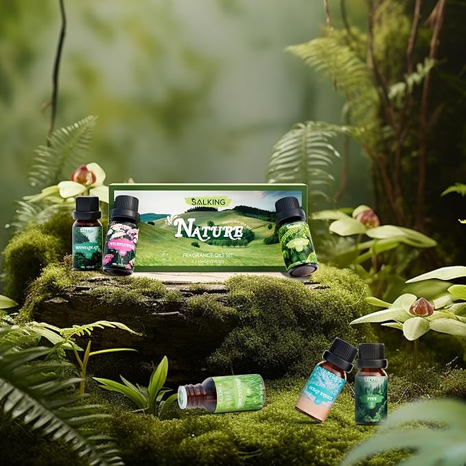 SALKING Nature Fragrance Oils, Premium Essential Oil for Diffuser, Scented Oil Gift Set for Soap Candle Making - Pine, Ocean Breeze, Rain, Fresh Cut Grass, Wildflowers, Mountain Air