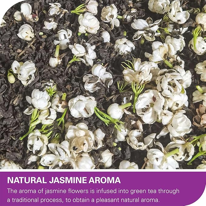 - 【Natural Jasmine Aroma】The unique floral aroma of jasmine green tea is made through a traditional process - the aroma of jasmine is infused into the green tea and then the tea leaves are dried after up to 5 aroma treatments