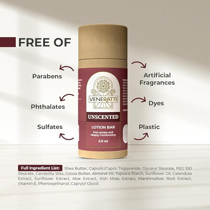 Lotion Bar Unscented - Vegan, Made in the US, Eco Friendly Stick - Quick Absorption, Non-Sticky - Natural Ingredients Solid Body Lotion for Women Dry Skin - Travel Body Lotion