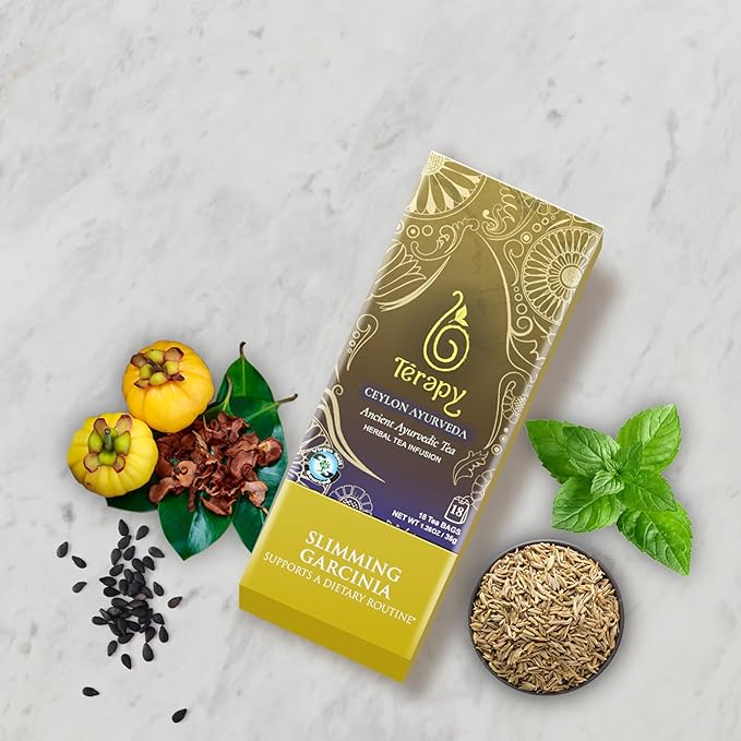 Tรฉrapy Ceylon All Day Slimming Tea | All Natural Herbal Ingredients featuring Garcinia Cambogia | Organic Herbal Slimming Tea Bags | Eco-friendly Individually Wrapped Tea Bags - 18 Count