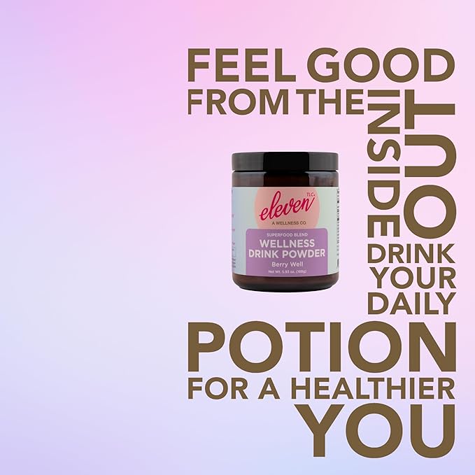 Eleven TLC, Berry Well Superfood Wellness Drink Latte + Mix, Caffeine-Free, or Herbal Tea, Blue Spirulina, Blue Butterfly Pea Flower, Organic Maca, Keto Friendly, Vegan, 63 Servings