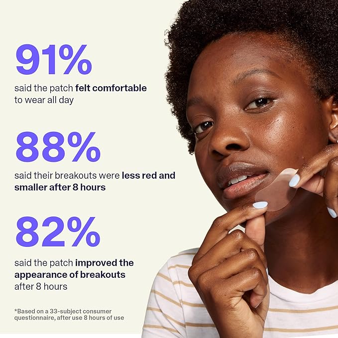 - RESULTS – 91% said the patch felt comfortable to wear all day and 88% said their breakouts were smaller and less red after 8 hours of use *33-subject consumer questionnaire