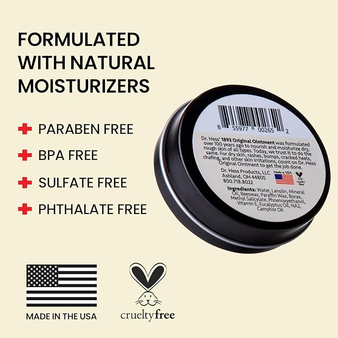 - Multipurpose Skin Care: Dr. Hess' 1893 All-Purpose Skin Ointment is perfect for various skin issues like dry skin, rashes, bumps, chafing, cracked heels, dry knuckles, and more; Use it as a moisturizer for dry skin or as a healing ointment for skin