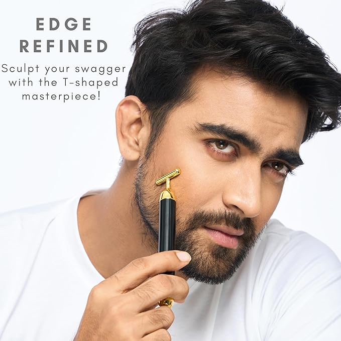 Black & Gold 3D Electric Facial Roller Massager Set, V Shape Roller & T Shape Massager, 3D Facial Roller, Skin Care Tools, Personal Massager
