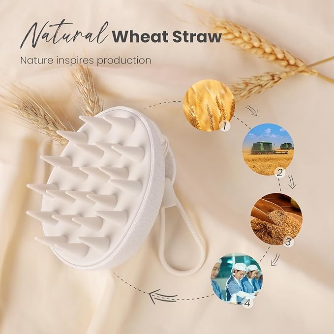 - Wheat Straw Scalp Scrubber: AIMIKE hair scalp massager shampoo brush is made of natural wheat straw with soft silicone bristles. Unlike the traditional hair shampoo brush, it is natural protector for your scalp and planet