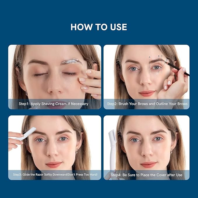 - SAFE AND PRECISE TO USE: This face razor's blade is designed with a macro mesh pattern, which removes eyebrow and lip hair. It is not easy to scratch the skin making it safe to use, and suitable for wide applications. Suitable for different eyebrow shapes. The precision shaver blades easily removes unwanted hair on all area’s of the face whether it’s the forehead, cheeks, lips and chin.