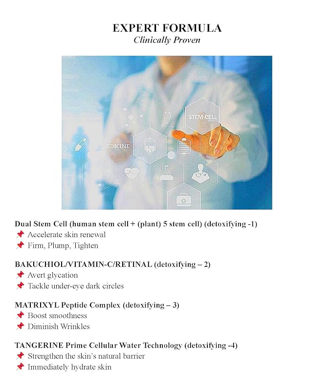 - Product Benefits : Cell Rejuvenation, Dull Skin, Brightening, Hydration, Anti aging, Anti Wrinkle, Skin Elasticity, antioxidant, Restores, repairs, detoxifies, hydrates Cell Rejuvenation, Dull Skin, Brightening, Hydration, Anti aging, Anti Wrinkle, Skin Elasticity, antioxidant, Restores, repairs, detoxifies, hydrates