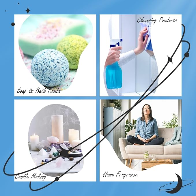 - Multi Applications: Designed for but not limited to candle making, diffuser oil scents, oils for laundry, soap making. Combining a few drops of essential oils with a spray bottle of water is an easy way to make an effective and entirely natural cleaning spray.