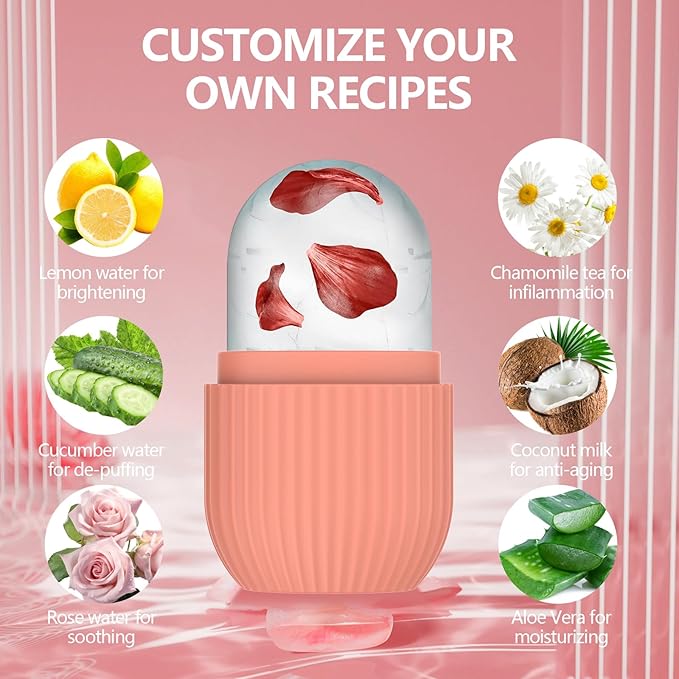 - Customize Preferences - Facial ice roller can enhance the skin care effect as per your creativity and customized formula according to your specific skin needs, such as lemonade for whitening, and coconut for improving skin. Even you can use a juicer to squeeze them into juice, then add water, essential oils, and roses to the ice tray.
