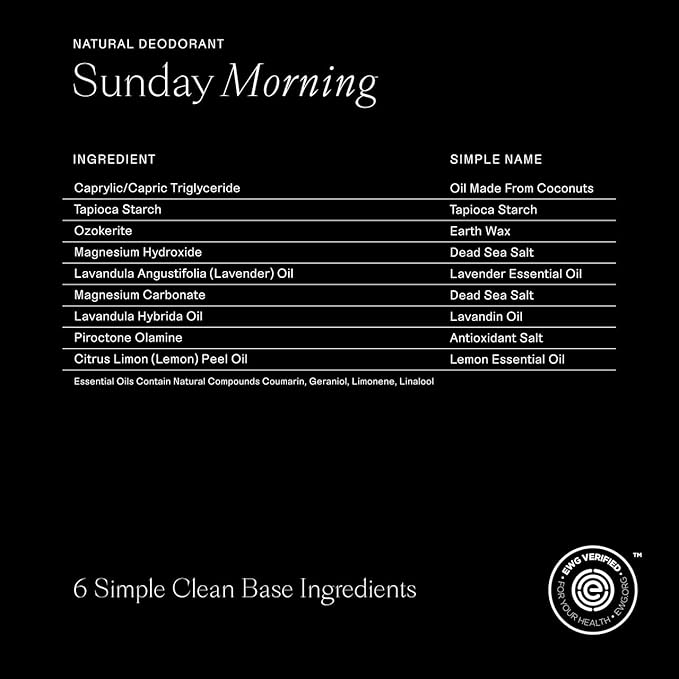 - Simple Ingredients That Work - We believe each and every ingredient matters. That's why we partner with individual farmers and distillers to ensure quality, safety and transparency in each all natural deodorant.