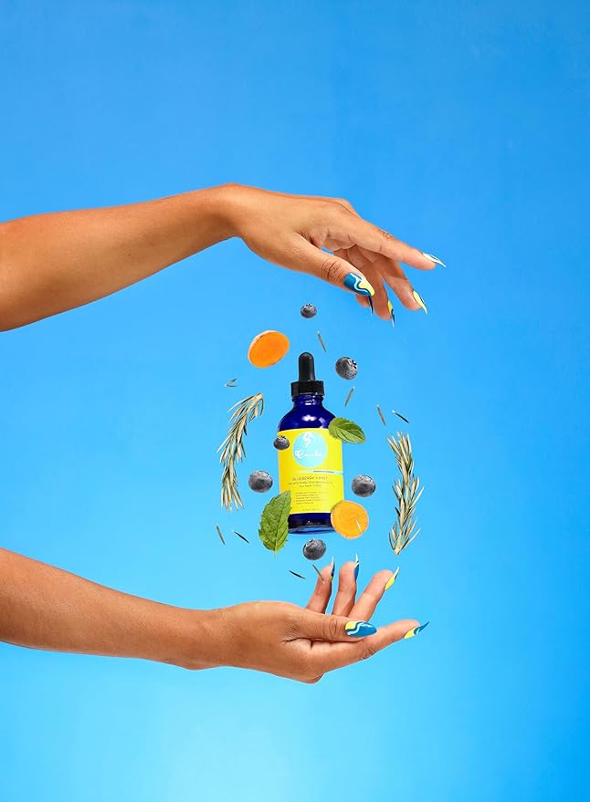 - Hair and Scalp Oil: Curls Blueberry + Mint Hair and Scalp Strengthening Oil is infused with turmeric, rosemary, blueberry and pumpkin seed oil to help to improve hair strength, enhance scalp conditioning and lock in hair moisture