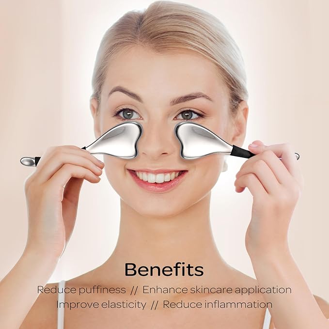 3-in-1 Cryo Gua Sha Facial Tools, Ice Roller Globes for Women Face and Eyes Massager, Unbreakable Stainless Steel Face Sculpting Skin Care Tools, Esthetician Supplies with Carry Case