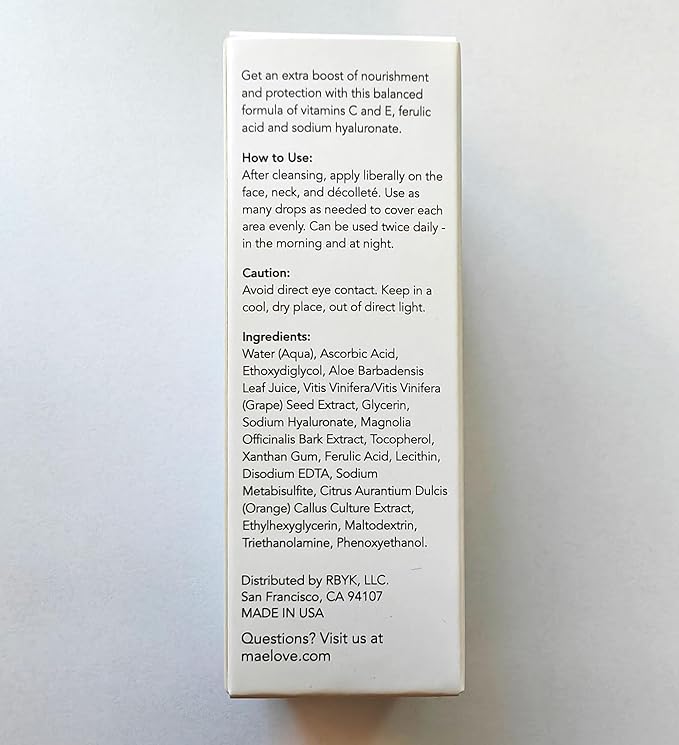 MAELOVE Glow Maker Vitamin C Serum with Vitamin E, Ferulic Acid & Hyaluronic Acid, Award-Winning Brightening and Hydrating Facial Serum, Unscented, 1.0 fl oz