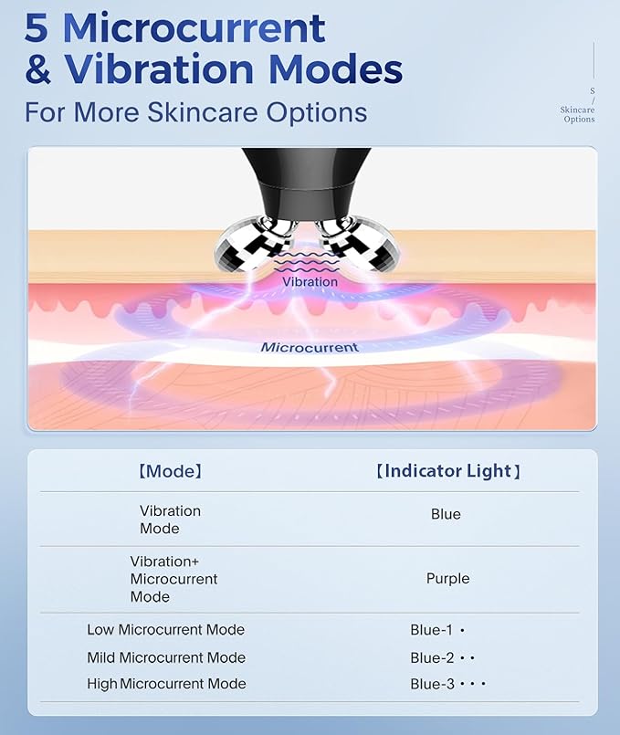 • [Safest Facial Massager with 5 Modes] Applying mild microcurrent and gentle vibration, this face massager will upgrade your skincare routine, firm up the face and neck.