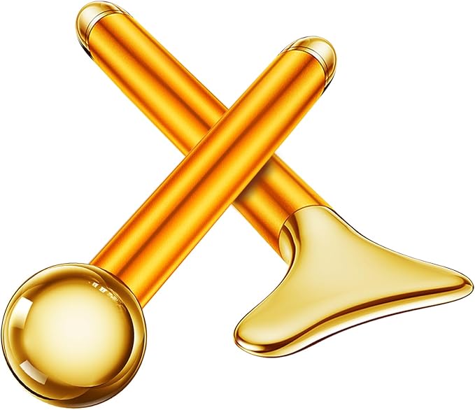 Amirce 2-in-1 Gua Sha and Ice Roller Facial Tools, Electric Face Massager Device for Eye, Jaw, Scalp, Neck, Gold