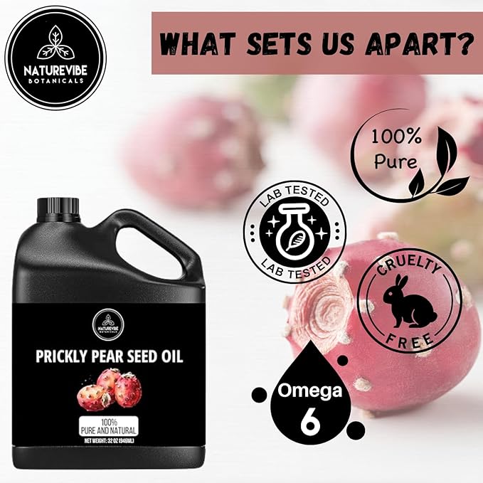 - ✅Naturevibe Botanicals Prickly Pear Seed Oil is a cold pressed oil which does not contain fillers or additives and is 100% pure which is used as a hair oil and body moisturizing oil by both men and women.